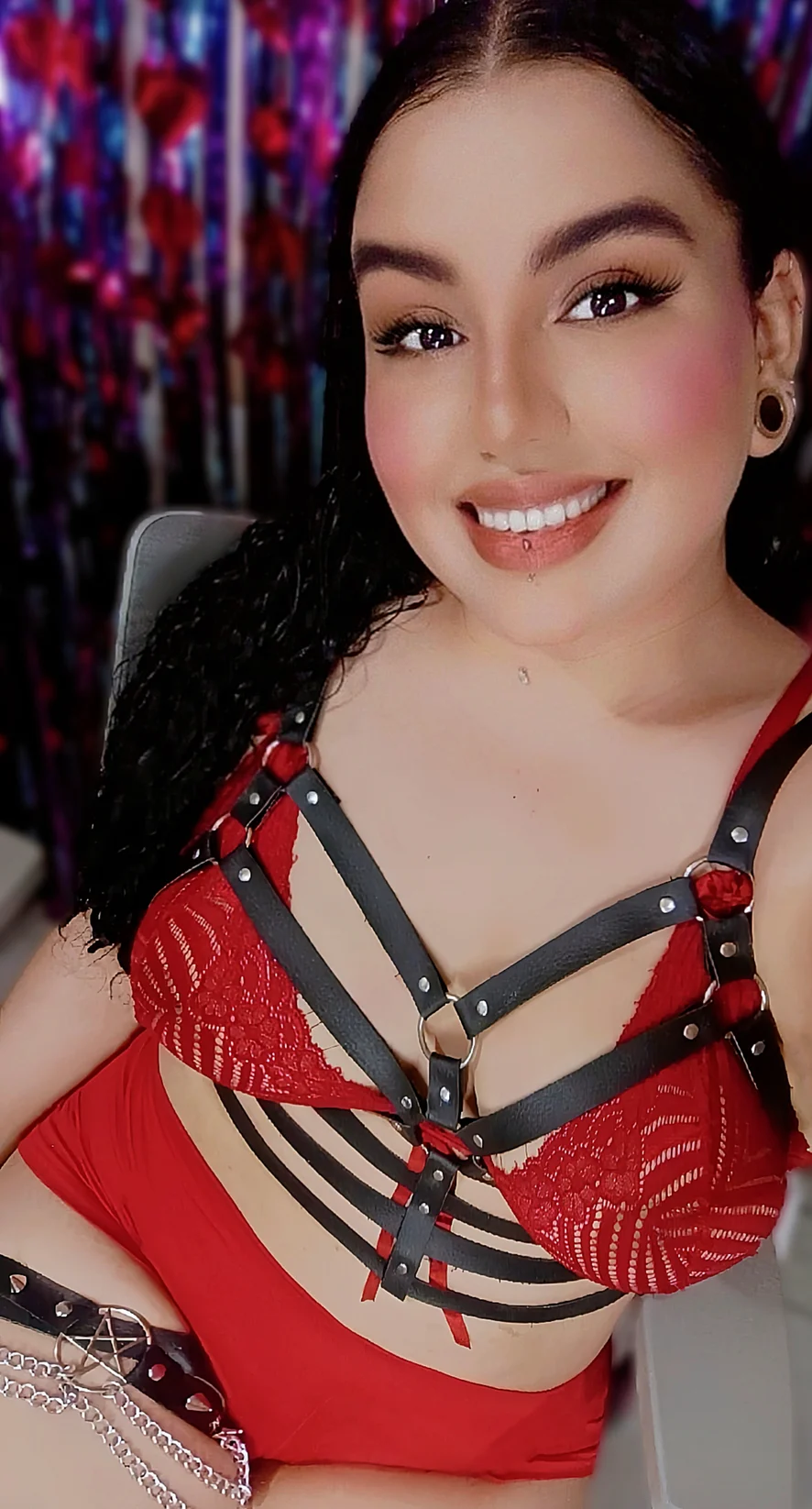 Renda vermelha e tiras pretas... a combinação do seu pior pecado. 🌹 Na minha sala é sem tabus e eu sigo o seu desejo. Quer ver o que acontece quando eu decido não ser uma boa garota? Vem que eu te mostro.